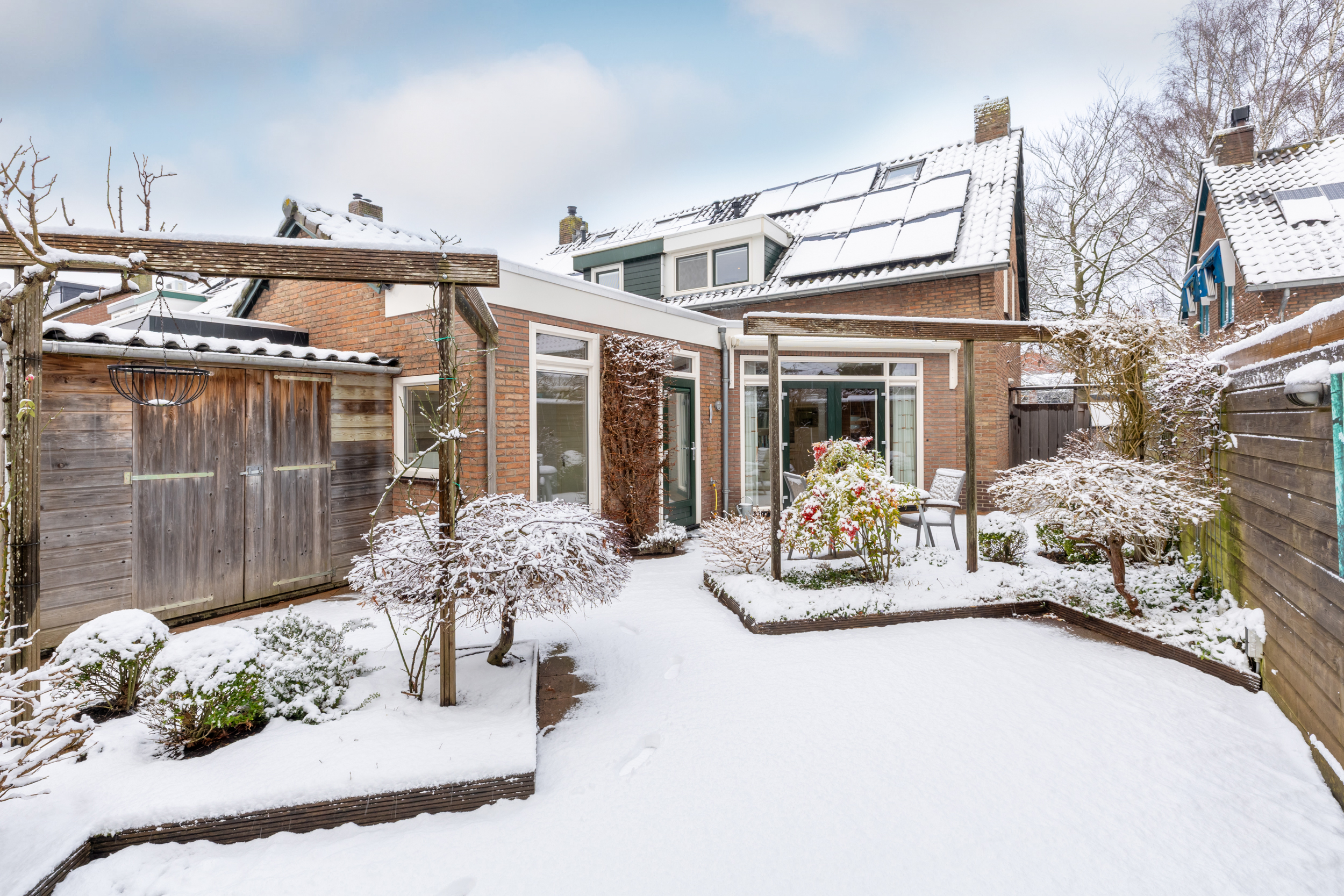 Raad het huis! Een uitgebouwde twee-onder-een-kapwoning met een zonnige achtertuin op het zuidoosten, 9 zonnepanelen en gelegen op Neck… Weet jij het al? Juist! Wij nemen je graag mee naar Raadhuisstraat 10 op Neck, Wijdewormer. We vertellen je graag meer over het huis én de omgeving. Neck, Wijdewormer is een fijne woonplek. Je woont hier in een gezellig dorp, op korte afstand van Purmerend (slechts 5 minuten fietsen). Het dorpshuis is het hart van het dorp, hiernaast ligt ook de basisschool en het kinderdagverblijf. Ook biedt het dorp diverse sportactiviteiten. Ben je toe aan een culinaire verrassing? Laat je smaakpapillen dan verwennen bij restaurant Mario, op korte afstand van de woning. Hier geniet je van Italiaanse gerechten van hoog niveau. Sinds 2018 is er bovendien theetuin De Neckermolen, waar je heerlijk kunt lunchen of genieten van een high tea. Daarnaast zit je binnen 5 minuten op de A7 richting Hoorn of Amsterdam. Laten we het huis gaan bekijken. Via de voordeur kom je in de hal, die toegang biedt tot het toilet, de trapopgang naar de eerste verdieping en de woonkamer met woonkeuken. De woonkamer bevindt zich aan de voorzijde van de woning en de woonkeuken aan de achterzijde. De achterzijde is uitgebouwd, waardoor hier extra veel leefruimte is ontstaan. Het geheel is heerlijk licht dankzij de openslaande tuindeuren en de geplaatste lichtkoepel. De L-vormige woonkeuken is voorzien van alle apparatuur die je je maar kunt wensen. Vanuit de keuken bereik je de bijkeuken, waar ruimte is voor de wasmachine en droger. Aangrenzend bevindt zich een kantoor-/slaapkamer. Welke functie ga jij deze ruimte geven? Op de eerste verdieping vind je de badkamer, uitgerust met een douche, toilet en wastafel. Daarnaast zijn er twee ruime slaapkamers, waarvan één met praktische inbouwkasten. Op de overloop bevinden zich tevens twee handige bergkasten en hier is ook de vlizotrap naar de vliering. Op de vliering is een extra slaapkamer gerealiseerd, maar deze ruimte is natuurlijk ook op een andere manier naar wens te gebruiken. De achtertuin is bereikbaar via de openslaande tuindeuren en via de bijkeuken. De op het zuidoosten gelegen tuin is fraai aangelegd en biedt altijd wel een plek in de zon of juist in de schaduw. In de tuin staat een houten schuur voor het opbergen van tuinspullen. Alles op een rij: – Uitgebouwde twee-onder-een-kapwoning – 9 Zonnepanelen – Dorps wonen maar op korte afstand van Purmerend Word jij al enthousiast van Raadhuisstraat 10? Maak dan snel met ons een afspraak voor een uitgebreide rondleiding.