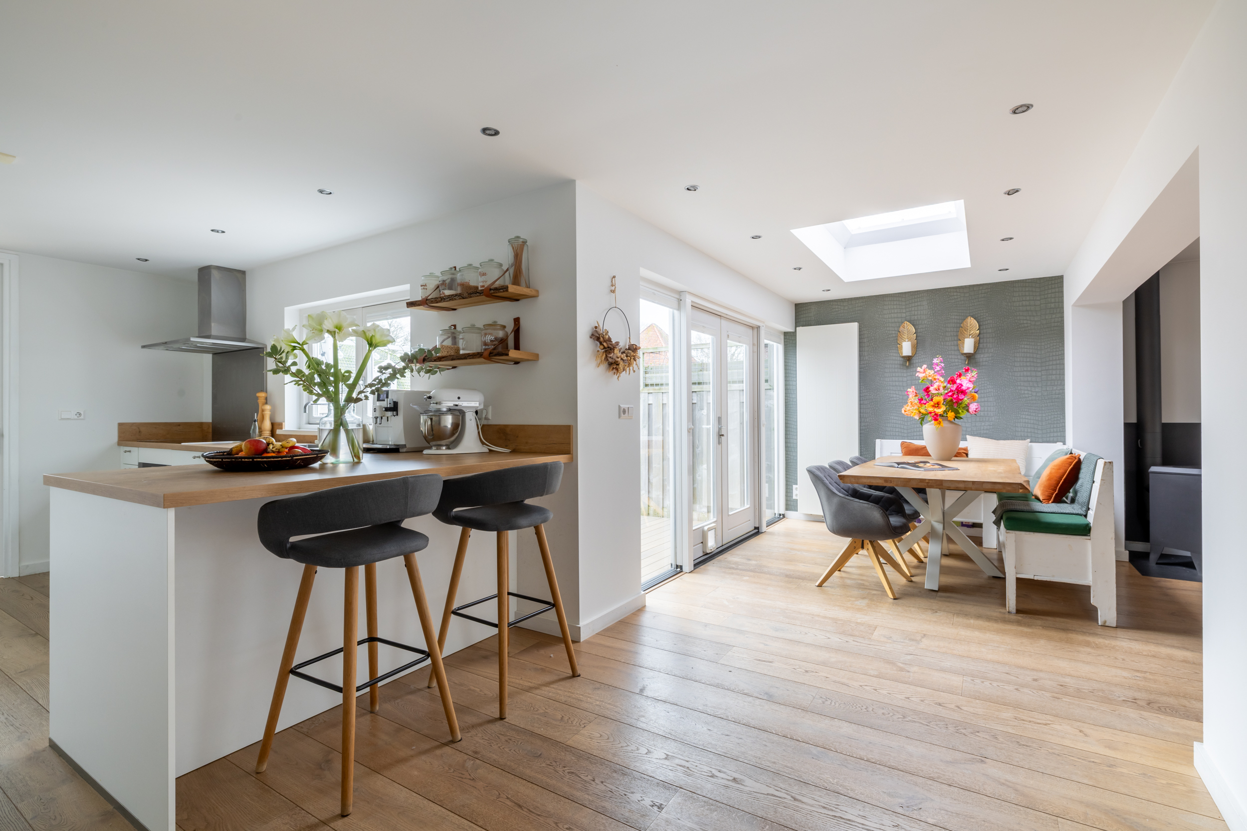 Wonen aan water in het centrum van Oosthuizen met een prachtige tuin op het zuidwesten Wat als je alles kunt combineren: een fijne sfeer, comfort, ruimte én een schitterende ligging aan het water? Dan kom je uit bij Seevancksweg 7 in Oosthuizen. Een huis dat je direct omarmt, met een tuin op het zuidwesten, meerdere leefruimtes, vier volwaardige slaapkamers, 14 zonnepanelen én een rustige ligging in het dorpshart. Hier woon je royaal, zonnig en ontspannen. Klaar voor de volgende stap in jouw woonverhaal? Een pittoresk dorp met alles binnen handbereik Oosthuizen is zo'n plek waar je meteen voelt: hier klopt het. Omringd door groen en water, met volop mogelijkheden om te wandelen, varen of gewoon te genieten van de rust. Toch zit je hier verrassend centraal. Binnen 10 minuten zit je op de A7 richting Hoorn of Amsterdam. Scholen, een supermarkt, sportverenigingen en gezellige horeca? Allemaal op loopafstand. En met de steiger achter je huis vaar je zó de landerijen in. Stap voor stap door het huis Begane grond De ruime hal verwelkomt je met een handige trapkast en een modern toilet. Vanuit hier loop je de lichte woonkamer in, met grote raampartijen die zorgen voor een fijne verbinding met buiten. De sfeervolle openhaard geeft warmte en karakter, maar ook via de vloerverwarming heb je altijd een comfortabel klimaat in huis. Via de eethoek, perfect gepositioneerd voor lange diners en gezellige borrels, kom je in de halfopen keuken, compleet met inbouwapparatuur. Vanuit de keuken is ook de garage/bijkeuken bereikbaar. Hier zul je 9 van de 10 keer binnen komen lopen om je tassen neer te zetten en je jas en schoenen uit te trekken. Zo wordt deze ruimte een ideale ruime hal waar je alles makkelijk kunt bergen. En dan… de tuinkamer. Wat een fijne plek! Met dubbele openslaande deuren naar de tuin en volop licht is dit een ideale ruimte voor een werkplek, hobbykamer of loungehoek. Eerste verdieping Hier vind je maar liefst vier slaapkamers, elk met een eigen uitstraling en fijne lichtinval. De master bedroom aan de achterzijde is royaal opgezet en kijkt uit over het water. Ook is hier een airco geplaatst die in de winter kan verwarmen en in de zomer de ruimte lekker koel houdt. De moderne badkamer is voorzien van een ligbad, aparte douche, tweede toilet en een wastafelmeubel, stijlvol en praktisch tegelijk. Vliering Via een vlizotrap bereik je de ruime vliering: ideaal voor extra opslag. Met een beetje creativiteit maak je hier zo iets bijzonders van. Buitenleven met een gouden randje De achtertuin is een droom: zonnig gelegen op het zuidwesten, direct aan het water en met een steiger voor je eigen bootje. De tuin is verzorgd aangelegd, met overkapping en groenborders. Een heerlijke plek voor zwoele zomeravonden, barbecuefeestjes of gewoon met een goed boek in de zon. De voortuin biedt parkeergelegenheid aan 2 auto's op eigen erf én een uitnodigende entree. Nog even alles op een rijtje: - Gelegen aan water met eigen aanlegsteiger - Ruime, lichte tuinkamer met openslaande deuren - Vier slaapkamers op de eerste verdieping - Zonnige tuin op het zuidwesten - Eigen oprit en parkeren op eigen terrein (2 auto's) - Sfeervolle woonkamer met openhaard; Klinkt als jouw thuis? Wacht dan niet te lang, want huizen als deze, met zoveel pluspunten én een plek aan het water, zijn zeldzaam. Plan een bezichtiging, ervaar de sfeer zelf en laat je verrassen door alles wat dit huis te bieden heeft. Bekijk ook de woningvideo voor een eerste indruk van Seevancksweg 7.