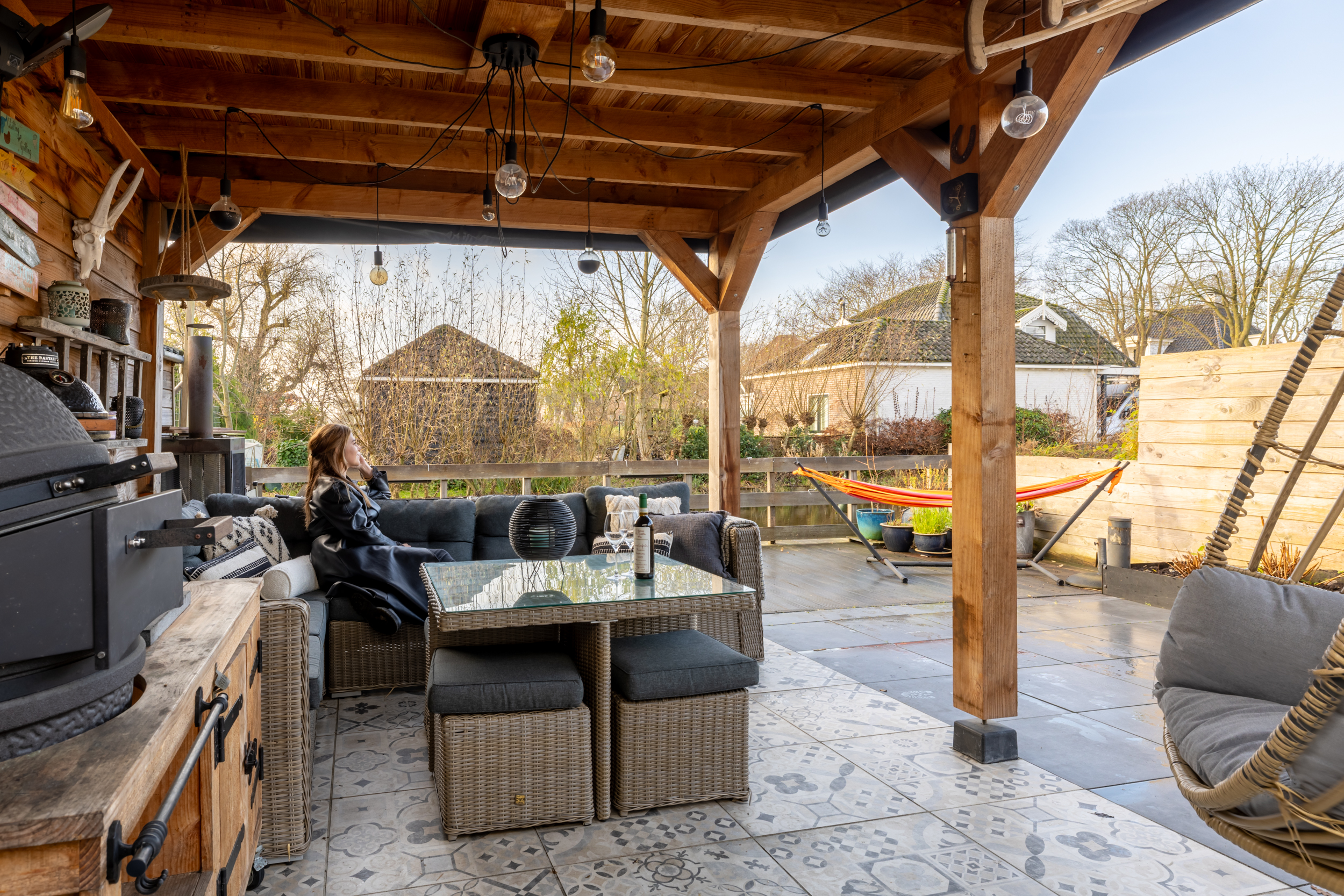 In de zomer stappen we achter ons huis op de SUP en komen dan een heel eind door alle leuke kleine slootjes, maar ook de ringvaart is erg dichtbij. Ons favoriete plekje is de steiger. Daar startten we op de mooie dagen de dag met een kopje koffie uitkijkend op de koeien of de eendjes in de sloot. In de avond sloten we daar af, met de warmte van de ondergaande zon en konden daarna nog uren doorbrengen in de overkapping waar het lang aangenaam warm blijft. Hier hebben we heerlijk kunnen bbq-en en vele boeken gelezen.