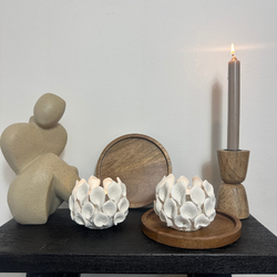 Het gebruik van hout geeft de kandelaar een natuurlijke en warme uitstraling. Hierdoor voelt je styling direct zachter en meer in balans. De diameter en hoogte van 16 cm maken hem perfect voor een subtiele, maar zichtbare toevoeging aan je interieur.