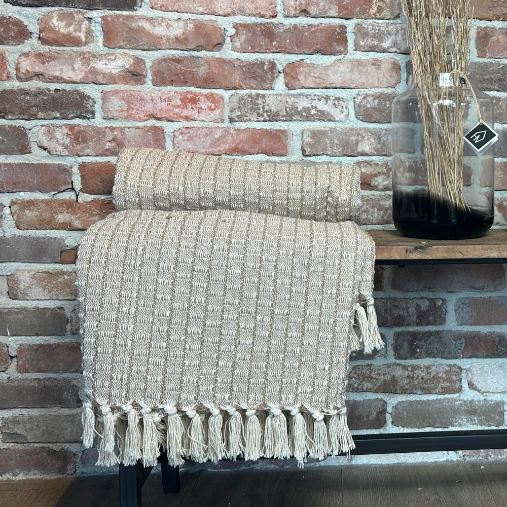 Deze leuke plaid Senn van het merk Jens Living is in India gemaakt van Recycled katoen. Hierdoor heeft het plaid een duurzaam karakter. Door het trendy motief en de leuke kwastjes, is dit plaid goed te combineren, kijk maar eens naar de combinaties die wij gemaakt hebben.