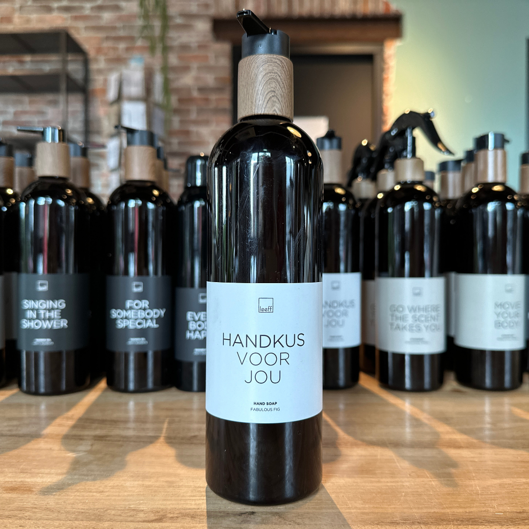 Voor het stagen van onze huizen maken wij heel graag gebruik van de producten van Leeff. Dit is voor ons natuurlijk vanwege de mooie vormgeving van de flessen die eigenlijk in elk interieur passen. Maar inmiddels zijn wij officieel ook verslaafd geraakt aan de geur van dit heerlijke merk. De geur van deze handzeep of zoals Leeff het noemt, handsoap – Handkus voor jou, is namelijk Fabulous Fig.