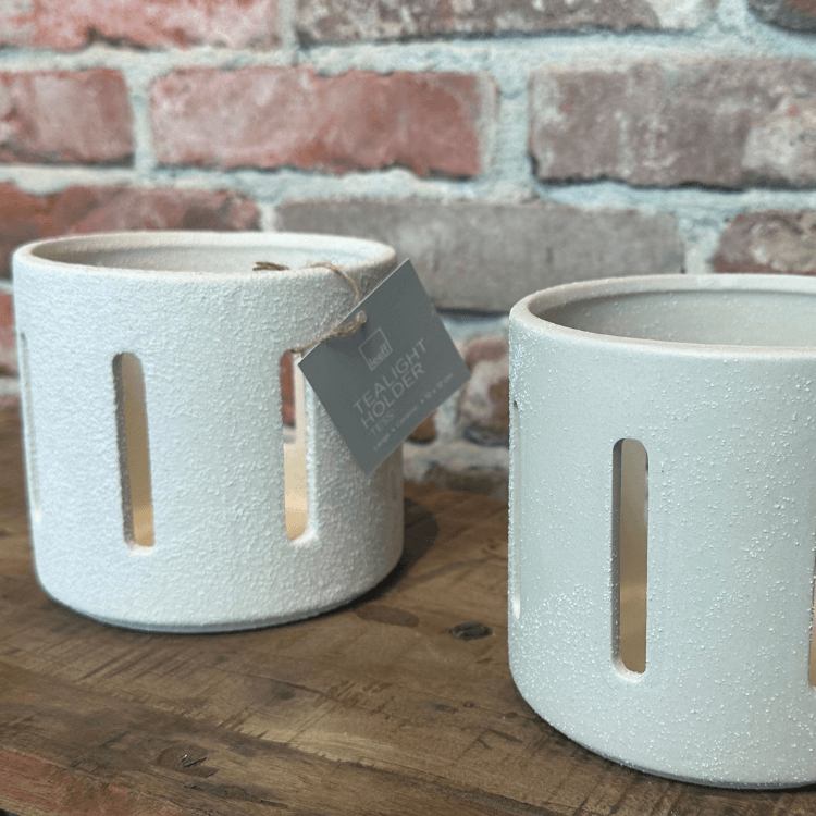 keramiek theelichthouder, offwhite kaarshouder, waxinelichthouder, sfeerlicht, Leeff Tess, woondecoratie, kaarsaccessoire, HR Home, stijlvol detail, warme interieurs